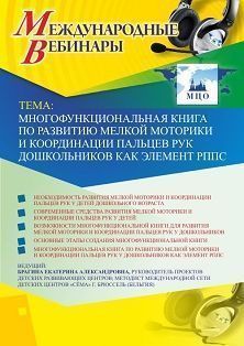 Международный вебинар «Многофункциональная книга по развитию мелкой моторики и координации пальцев рук дошкольников как элемент РППС»