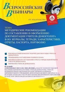 Вебинар «Методические рекомендации по составлению и оформлению документации учителя-дефектолога в ОО: журналы, тетради, характеристики, отчеты, паспорта, портфолио»