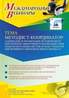 Международный вебинар «Методист-координатор: содержание и организация методического обеспечения эффективного взаимодействия педагогов и специалистов ОО как субъектов инклюзивного образовательного процесса»