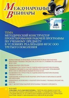 Международный вебинар «Методический конструктор проектирования рабочей программы по учебному предмету в условиях реализации ФГОС ООО третьего поколения»