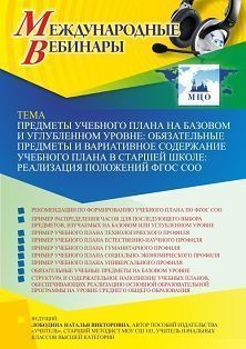Международный вебинар «Предметы учебного плана на базовом и углубленном уровне. Обязательные предметы и вариативное содержание учебного плана в старшей школе: реализация положений ФГОС СОО»