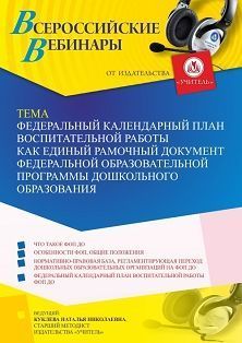 Вебинар «Федеральный календарный план воспитательной работы как единый рамочный документ Федеральной образовательной программы дошкольного образования»