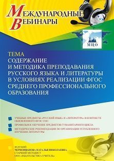 Международный вебинар «Содержание и методика преподавания русского языка и литературы в условиях реализации ФГОС среднего профессионального образования»