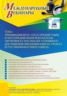 Международный вебинар «Требования ФГОС СОО к предметным и метапредметным результатам обучения и способы их успешного достижения школьниками на уроках естественнонаучного цикла»