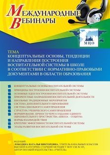 Международный вебинар «Концептуальные основы, тенденции и направления построения воспитательной системы в школе в соответствии с нормативно-правовыми документами в области образования»