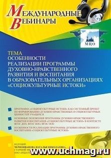 Международный вебинар «Особенности реализации программы духовно-нравственного развития и воспитания в образовательных организациях “Социокультурные истоки”»