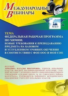 Международный вебинар «Федеральная рабочая программа по химии: новые требования к преподаванию предмета на базовом и углубленном уровнях обучения в соответствии с ФОП ООО и ФОП СОО»