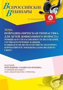 Вебинар «Нейродинамическая гимнастика для детей дошкольного возраста: повышаем согласованность полушарий, улучшаем речевые навыки, развиваем мелкую и крупную моторику, корректируем эмоционально-волевую сферу» Вебинары УчМет | V4.Ru: Маркетплейс