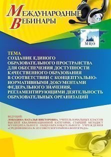 Международный вебинар «Создание единого образовательного пространства для обеспечения доступности качественного образования в соответствии с концептуально-нормативными документами федерального значения, регламентирующими деятельность ОО»