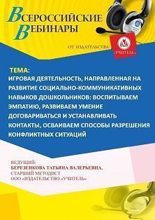 Вебинар «Игровая деятельность, направленная на развитие социально-коммуникативных навыков дошкольников: воспитываем эмпатию, развиваем умение договариваться и устанавливать контакты, осваиваем способы разрешения конфликтных ситуаций»