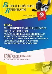 Вебинар «Методическая поддержка педагогов ДОО: разъяснения положений приказа Министерства просвещения Российской Федерации от 6 ноября 2024 г. № 779 в части реализации образовательных программ дошкольного образования»