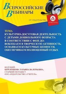 Вебинар «Культурно-досуговая деятельность с детьми дошкольного возраста в соответствии с ФОП ДО: вовлекаем в творческую активность, осваиваем культурные ценности, обеспечиваем полноценный отдых»