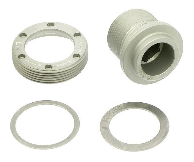 Прижимающий, самовыжимной болт для систем FSA с диаметром вала 30 мм. Выполнен из алюминия, резьба М18, для шатунов без стягивающих болтов. Упорная гайка, вкручиваемая в левый шатун имеет левостороннюю резьбу. Для систем под каретки BB30, BB386.