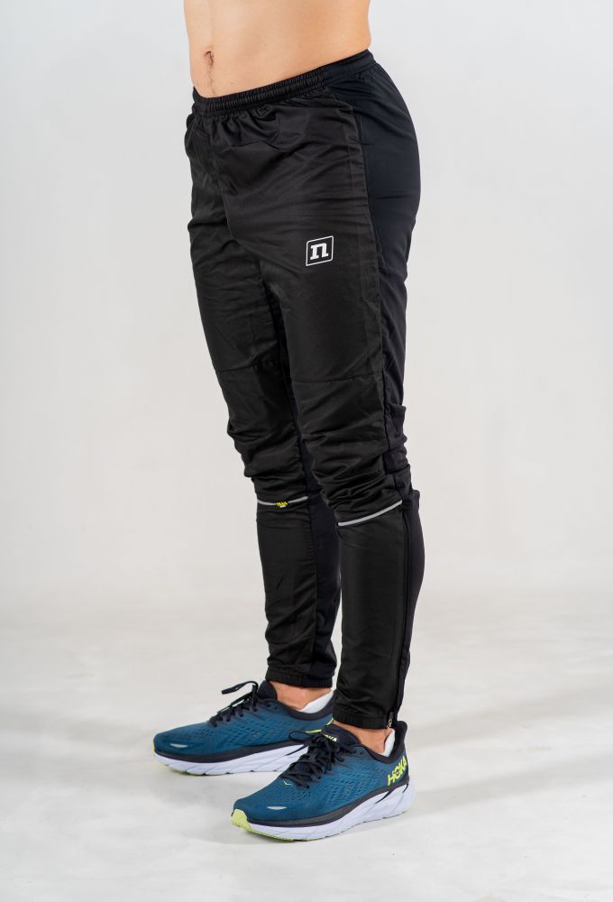 Брюки для бега и тренировок NONAME RUNNING PANTS из ветро- и водоотталкивающей микроткани спереди и дышащей и эластичной ткани сзади.