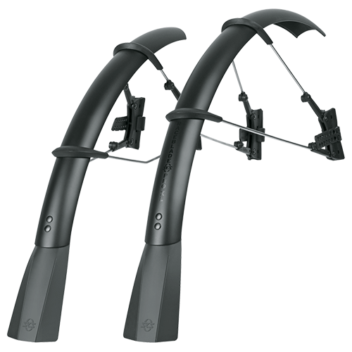 Данный комплект крыльев заточен под шоссейные и циклокроссовые велосипеды с шириной покрышек от 28 до 32 мм. Регулируемая длина стоек позволяет точно подогнать крылья под диаметр колеса, а быстросъемные крепления делают возможной установку на рамы без крепежных отверстий.