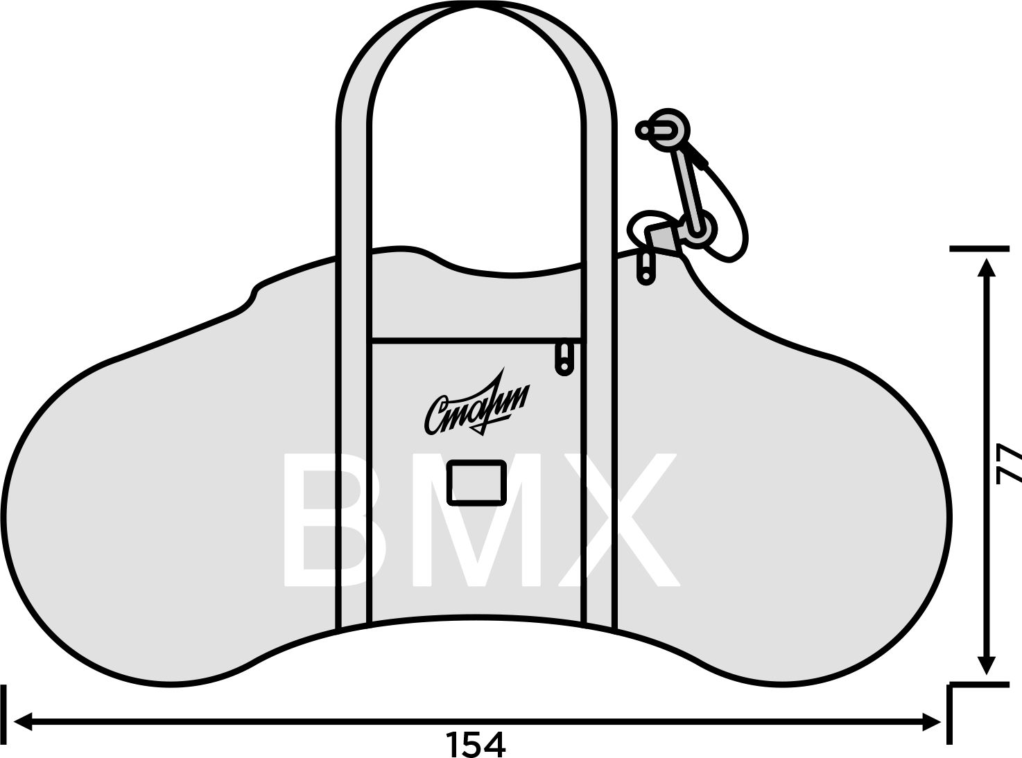 Чехол Старт для транспортировки и переноски велосипеда BMX или велосипедов с диаметром колёс 20 дюймов (детские, подростковые, складные) без снятого переднего колеса. Его основные преимущества: