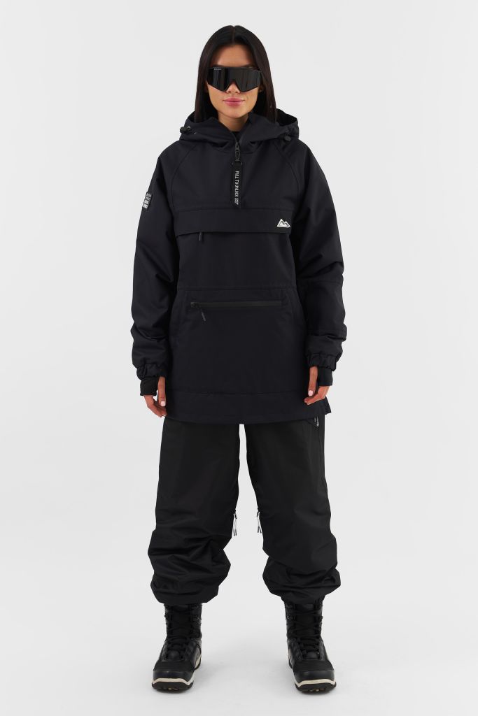 Особенностью этого анорака является боковая молния с двумя бегунками, плавно переходящая в вентиляционное отверстие, обеспечивая дополнительный приток воздуха и облегчая процесс надевания и снятия. Снегозащитная юбка, выполненная с застежкой на кнопках, надежно защищает от попадания снега, делая этот анорак идеальным выбором для активного отдыха в холодных условиях. Каждая деталь продумана для максимального комфорта и защиты в суровых погодных условиях.