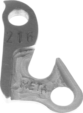 Алюминиевый держатель заднего переключателя "петух" от отечественного производителя Meta. Изготовлен методом фрезеровки из дюралюминия. Перед покупкой внимательно сверяйте форму и расположение крепежных отверстий с имеющимся образцом или же рамой велосипеда. Совместим с рамами велосипедов: