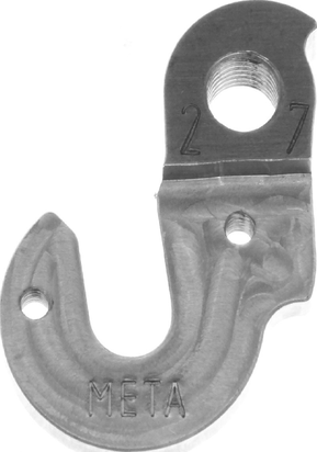 Алюминиевый держатель заднего переключателя "петух" от отечественного производителя Meta. Изготовлен методом фрезеровки из дюралюминия. Перед покупкой внимательно сверяйте форму и расположение крепежных отверстий с имеющимся образцом или же рамой велосипеда. Совместим с рамами велосипедов: