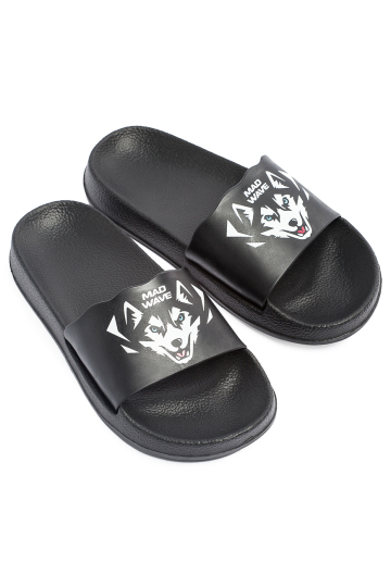 Сланцы очень удобно сидят на ноге, быстро сохнут и не натирают кожу. Водоотталкивающий верх с изображением пса породы хаски изготовлен из ПВХ. Подошва из мягкого и прочного материала EVA обеспечивает хорошую амортизацию при ходьбе и отличное сцепление с мокрой поверхностью.