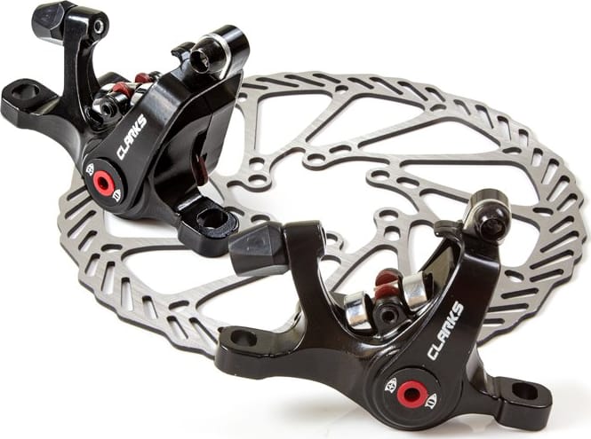 Комплект дискового тормоза CLARK`S CMD-22 Post Mount. Новаторский двухпоршневой суппорт с откидной дугой подходит для шоссейных / велокроссовых / гибридных велосипедов. Его двойной поршень обеспечивает равномерное торможение и модуляцию с обеих сторон ротора благодаря своей уникальной конструкции, которая позволяет активировать оба поршня одновременно.