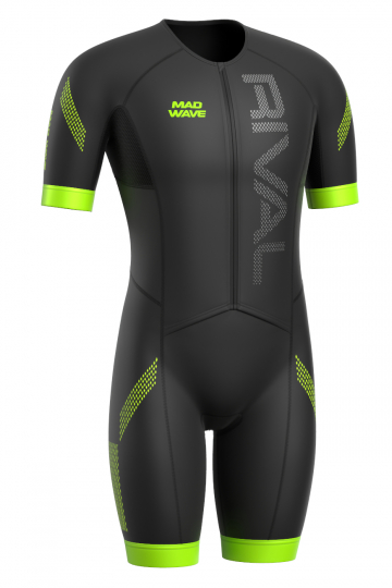 Ткань трисюта имеет высокую степень защиты от ультрафиолета UPF 50+. Застежка молния спереди позволяет легко надевать и снимать костюм. Сетчатые вставки на спине и под мышками, обеспечивают терморегуляцию и отвод влаги, позволяя коже дышать и поддерживая микроклимат. Технологичные рукава AeroMAX уменьшают сопротивление воздуха, улучшая аэродинамические характеристики триатлета. Резинка с силиконовым слоем по нижней части ног и рукавов, предотвращает сползание и натирание костюма. На спине расположены плоские карманы для хранения питательных гелей, поддерживающих энергетический баланс во время интенсивной физической активности.