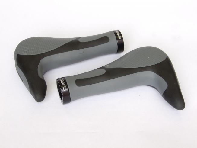 Цельные эргономичные рукоятки с фиксирующим хомутом. Изготовлены из резины с гелевым наполнителем. Алюминиевый хомут обеспечивает жесткую фиксацию грипсы в заданном положении и предотвращает прокручивание рукоятки на руле. Длина 138 мм.