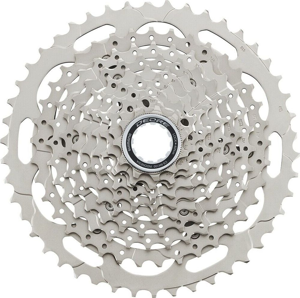 Обновленная группа оборудования Shimano Deore привносит технологии высших групп Xtr и Xt в мир любительского велоспорта. Выполненная по технологии Hyperglide, кассета Shomano Deore CS-M4100 имеет достаточно широкий диапазон звезд для катания по любой местности, используя как 1-х, так и 2-х систему шатунов. Фирменная система пиковых рамп обеспечивает четкое переключение как под нагрузкой, так и в грязи.