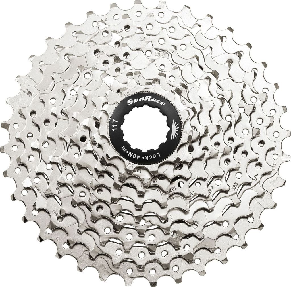 Кассета SunRace CSM96 на 9 скоростей. Имеет облегченный дизайн с выборкой металла со внутренней стороны кассеты и сверловкой по периметру звезд и защищенные от коррозии никелированные звезды. Высокой скорости и плавности переключения способствуют пиковые рампы, позволяющие цепи мгновенно менять передачу.