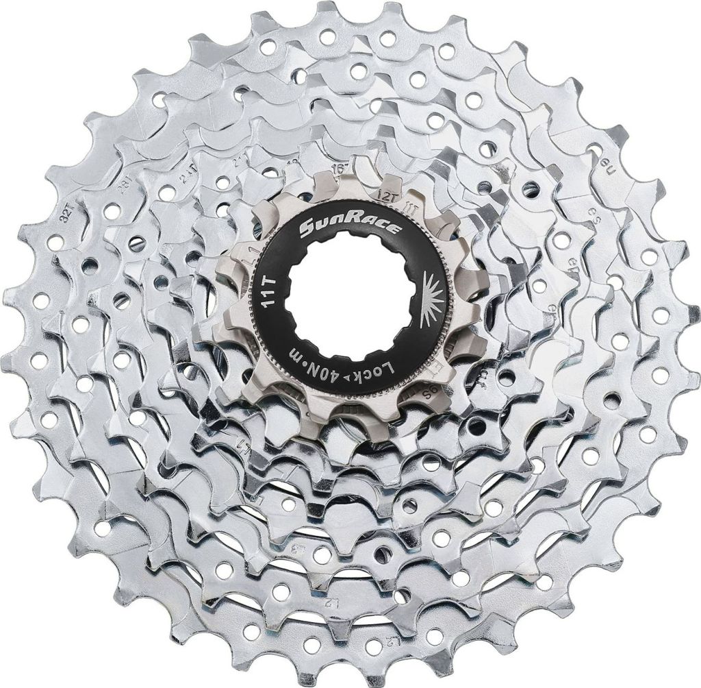 Кассета SunRace CSM90 на 9 скоростей. Имеет облегченный дизайн с выборкой металла со внутренней стороны кассеты и защищенные от коррозии вороненые звезды. Высокой скорости и качеству переключения способствуют пиковые рампы, позволяющие цепи мгновенно менять передачу.