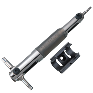 Компактный профессиональный ключ с четырьмя головками разных типов, допускается использование в веломастерской. Поворотный механизм для труднодоступных болтов, удобная резиновая рукоятка. В комплекте крепление, которое можно состыковать с аналогичными от ключей серии ToolStick.