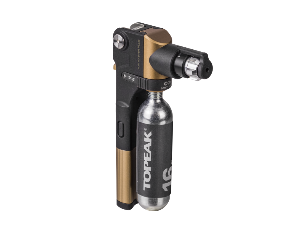 Мультитул ,включающий в себя все необходимое для ремонта бескамерных покрышек. В компактном корпусе находится насадка для баллончика СО2, совместимая с любым типом ниппеля и позволяющая использовать баллончики и на 16, и на 25 г, а также шило для установки ремонтных жгутиков, нож для обрезки излишков, и отсек для хранения жгутиков. На велосипед Tubi Master+ крепится с помощью специального модуля, устанавливаемого на подседельный штырь или раму прорезиненной липучкой.