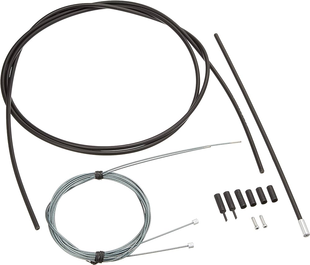 Комплект тросов и рубашек Shimano Optislick состоит из отрезка рубашки OT-SP41 длиной 1700мм,специализированной рубашки для петли возле заднего переключателя OT-RS900 длиной в 240мм, а также двух тросов из нержавеющей стали с покрытием Optislick 1800 и 2100 мм длиной. Также сюда включены 3 наконечника рубашки переключения без уплотнения, 3 с латунным уплотнителем и 2 наконечника троса, защищающие тросы от грязи, воды и обеспечивают долговечное низкое трение.
