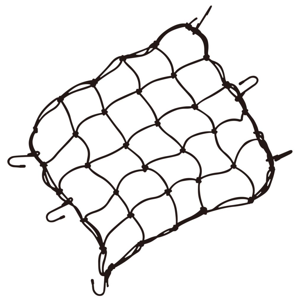 Эластичная нейлоновая фиксирующая сетка для багажных корзин серий Topeak TrolleyTote, MTX и совместимых. Надежно удерживает содержимое корзины при помощи шести крепежных крюков.