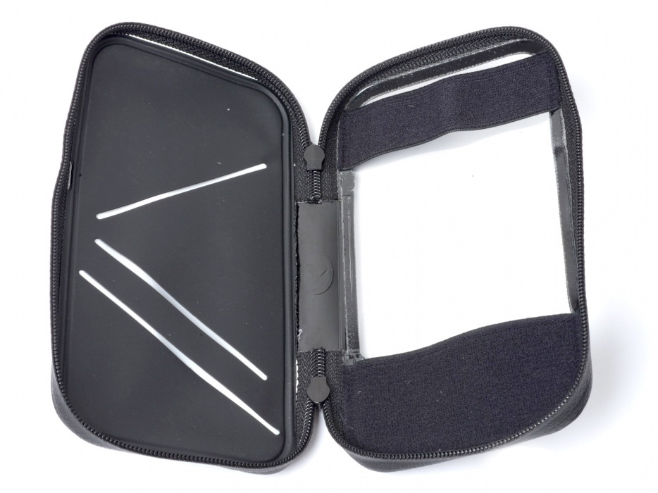 Герметичный чехол для мобильных телефонов. Крепится к штоку вилки, имеет быстросъемный механизм. Молнии прорезинены, телефон фиксируется внутри чехла мягкими широкими резинками.