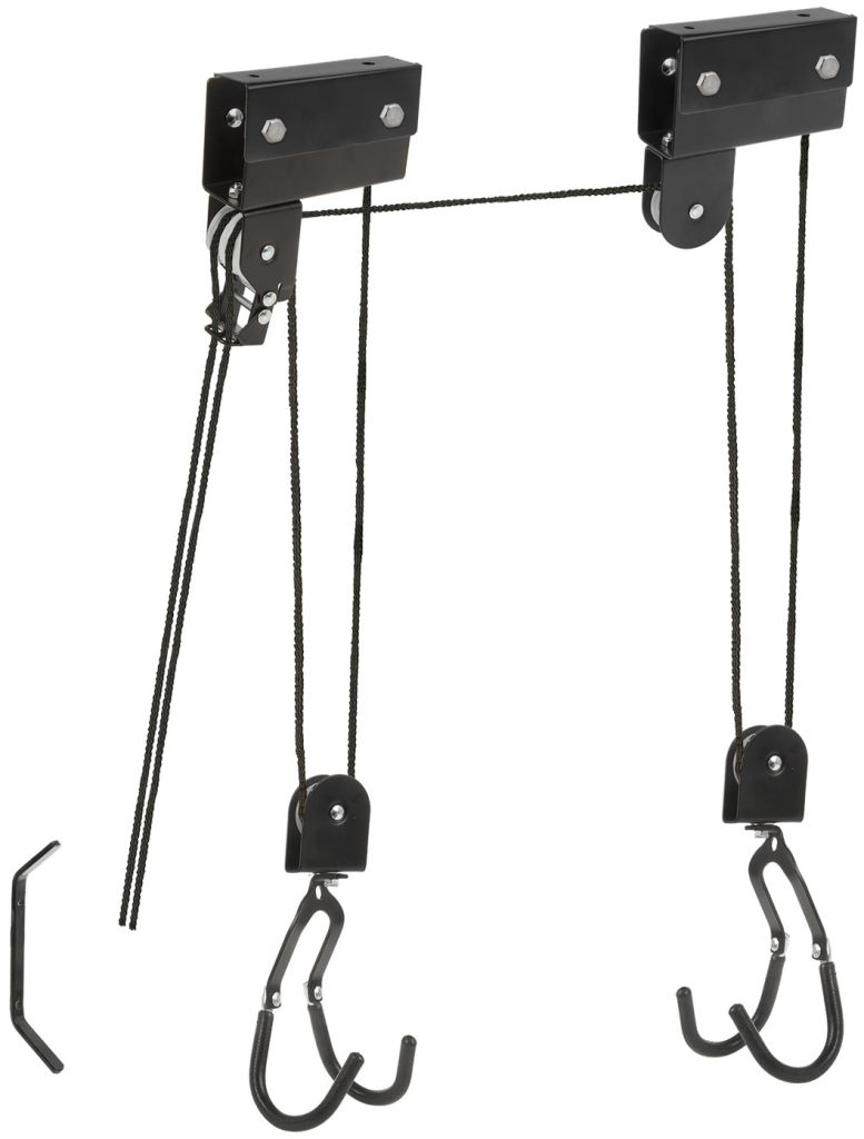 Альтернативный вариант системы хранения велосипеда M-Wave Bike Lift для велосипедов с высокой массой, как то, электровелосипеды. Представляет из себя конструкцию блоков с потолочным креплением, благодаря которым, велосипед может быть поднят на высоту до четырех метров. Все силовые элементы конструкции стальные, ролики пластиковые, трос нейлоновый усиленный. Благодаря надежности конструкции может быть использован для хранения бытовых предметов: стремянки, багажные кофры для автомобилей и т.д.