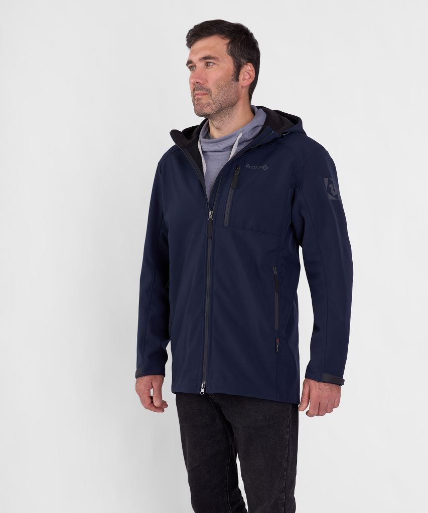 Мужской плащ из трехслойного материала Softshell с мембраной 10 000 мм и водоотталкивающей пропиткой. Куртка обеспечивает защиту от любых осадков и ветра.