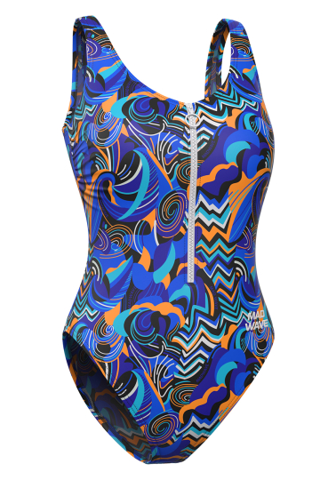 С помощью молнии можно регулировать глубину выреза и создавать эффектное декольте. Формованные поролоновые чашки, широкие бретели, эластичная лента под грудью и перемычка на спине создают дополнительную поддержку в области груди. Полуоткрытая спина обеспечивает максимальное удобство и свободу движения в воде. Модель имеет средний вырез бедра и поэтому подходит для любого типа фигуры.