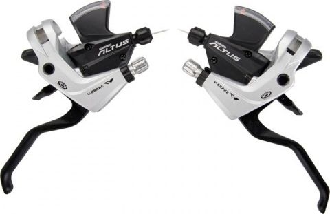 Моноблоки Shimano Altus ST-M370 - это комплексный подход к расположению элементов управления велосипеда. Манетки имеют компактные габариты и оснащены оптическими индикаторами передач. Применяется технология rapidfire plus – сброс передачи возможен любым из курков. Тормозные рукоятки алюминиевые, рассчитаны на активацию двумя - тремя пальцами. Совместимы с любыми механическими тормозами, будь то V-Brake, так и дисковая механика.