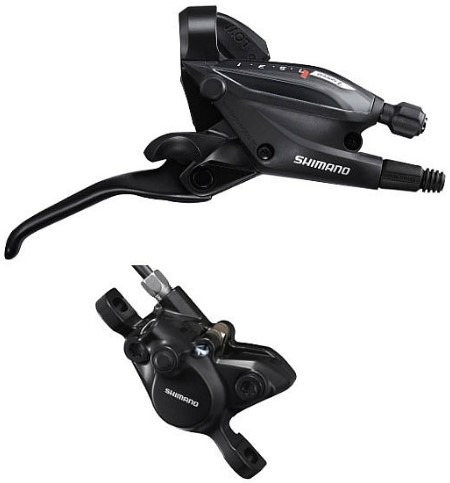 Моноблоки Shimano ST-EF505 - это комплексный подход к расположению элементов управления велосипеда. Манетки имеют компактные габариты и оснащены оптическими индикаторами передач. Тормозные рукоятки алюминиевые, рассчитаны на активацию двумя - тремя пальцами. Комплект оснащен эффективной гидравлической тормозной системой Shimano BR-MT200 с полимерными колодками.