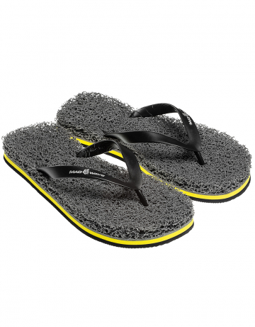 Отличительной особенностью этой модели является мягкая, приятная на ощупь стелька, имитирующая ковровое покрытие. Она создает легкий массажный эффект и не дает ноге скользить внутри обуви. Эластичная резиновая перемычка с логотипом Mad Wave, надежно фиксирует обувь на ноге. Рельефная подошва минимизирует скольжение по мокрой поверхности и обеспечивает комфортные ощущения, поэтому ноги не устают даже во время длительной носки.