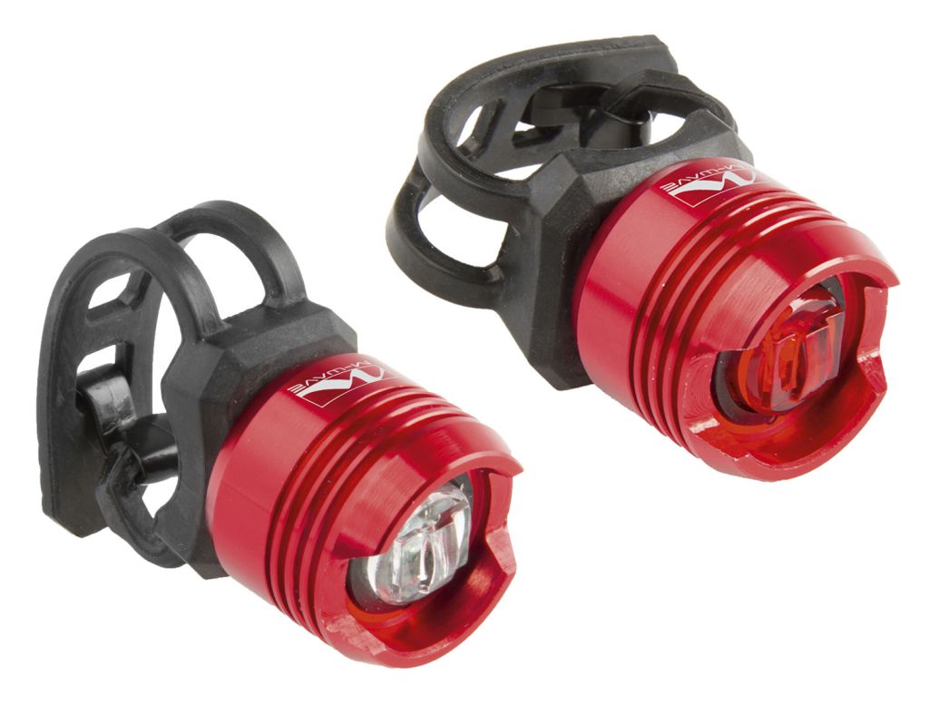 Комплект из двух сигнальных маячков ACME M-Wave Apollo mini. Фонари имеют стильные фрезерованные из алюминия корпуса с яркими светодиодами красного и белого цветов, для установки на подседельный штырь и руль велосипеда, соответственно. Фиксируются маячки при помощи эластичных хомутов, причем задний расположен под углом, таким образом, чтобы стоять вертикально при фиксации на подседельной трубе. Компактные габариты и невысокий вес позволяют фонарям быть установленными на велосипеды любого типа, без ущерба для общего внешнего вида.