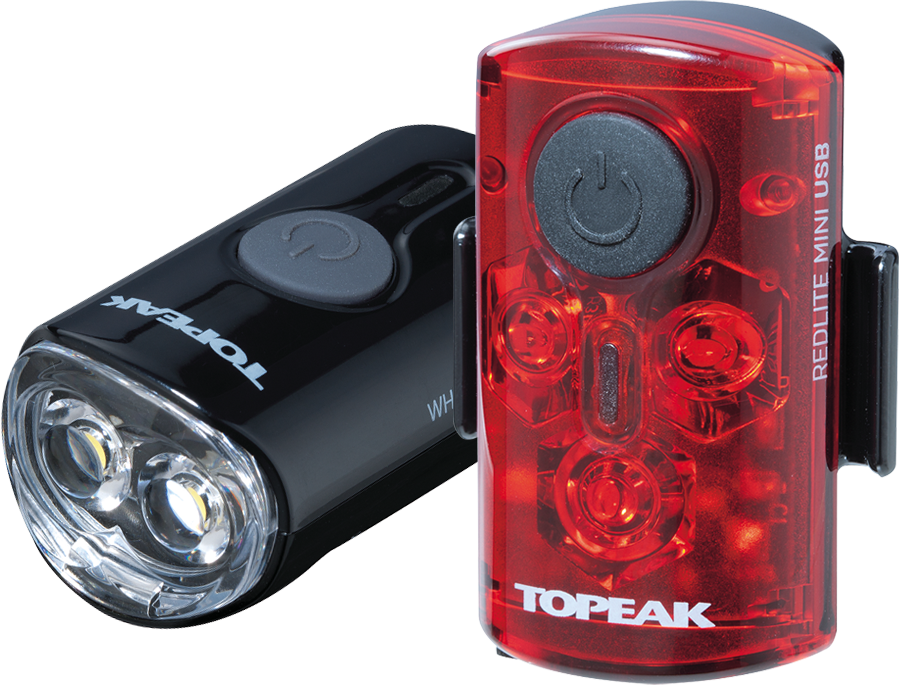 Компактные и сверхяркие светодиодные передний (2 x 0,3 Вт) / задний (3 x 0,2 Вт) фонари для освещения дороги домой после наступления темноты. RedLite® Mini USB со встроенным зажимом легко прикрепляется к любой сумке Topeak.