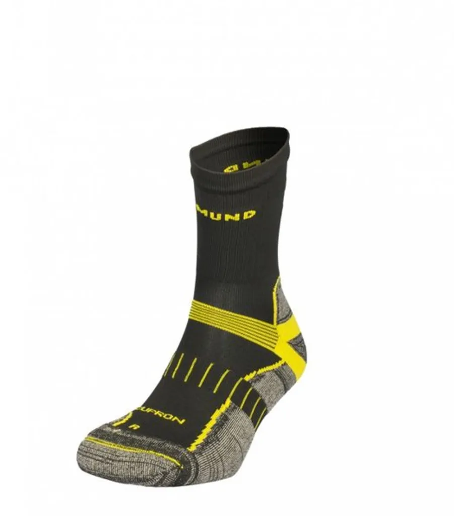 Носки Mund Peregrino с защитой от мозолей и терморегуляцией — идеальные носки для походной обуви (проверено производителем на маршруте Камино-де-Сантьяго). Благодаря волокну SOFTAIR® PLUS эти носки регулируют температуру стопы, обеспечивая прохладу или тепло в зависимости от условий, в которых они используются. Так же эта модель с антибактериальными и терапевтическими свойствами благодаря волокну CUPRON®, которое содержит ионы меди препятствующие размножению бактерий, вызывающих неприятные запахи. Кроме того, медь помогает регенерации кожи, поэтому носки рекомендуют для многодневных походов.