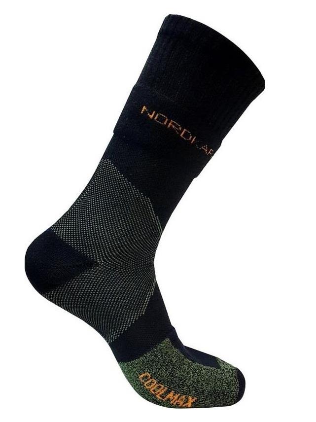 Носки NordKapp для треккинга с волокнами Coolmax. Великолепно отводят влагу, очень быстро высыхают, препятствуют появлению неприятных запахов, гипоаллергенны. Улучшают вывод влаги при использовании в обуви с применением мембранных материалов. Специальное уплотнение по подошве обеспечивает комфорт при ходьбе.