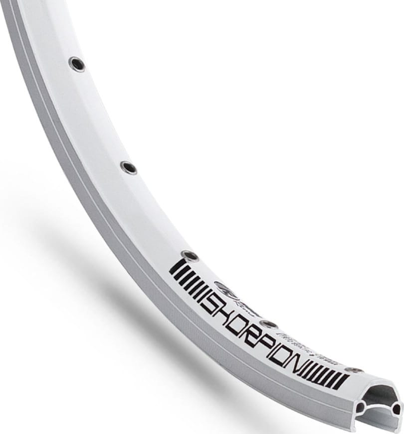 Надёжный алюминиевый двустенный обод Rodi Skorpion. Рассчитан под использование с ободными тормозами. Тормозная поверхность отфрезерована после склепывания обода и имеет индикатор износа. Для повышения прочности колеса, отверстия под ниппеля спиц пистонированы.