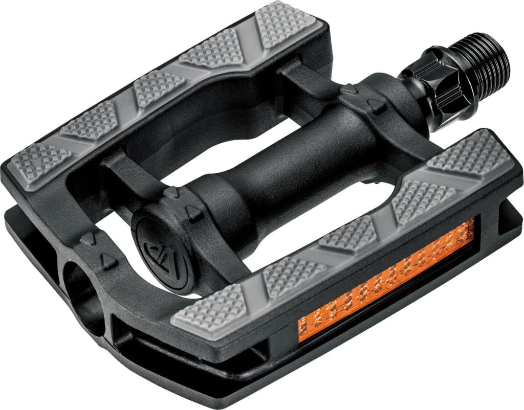 Педали - платформы VP Components VPE-857. Имеют широкие прорезиненные платформы для лучшего сцепления. Материал корпуса - стойкий к ударам нейлон, обладающий невысокой массой. Вращение обеспечивается шариковыми подшипниками. Ось хром-молибденовая.