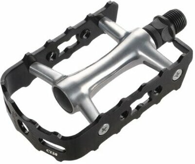 Классические цельнометаллические педали Wellgo С128. Центральная часть корпуса вылита из алюминия, к ней крепится алюминиевая же рамка. Рамка оснащена отверстиями для монтажа туклипсов и катафот.