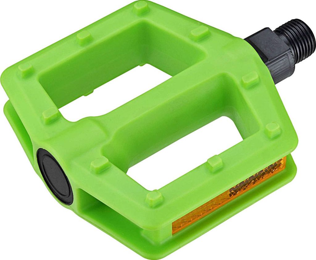 Педали - платформы Author APD-522 для подростковых велосипедов. Платформы среднего размера выполнены из высокопрочного нейлона. На торцах имеются светоотражатели - катафоты, дающие немного больше безопасности при передвижении в темное время суток. Вращение обеспечивается шариковыми подшипниками. Ось хром-молибденовая.