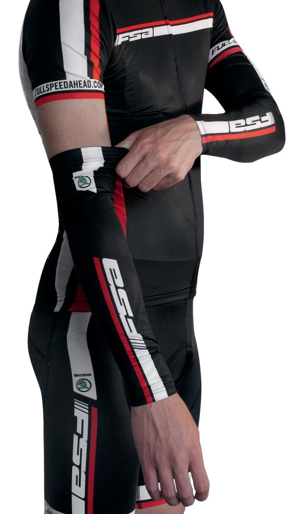 Утепляющие нарукавники FSA для велоспорта. Выполнены из плотного полиуретанового материала lycra, обеспечивающего необходимое утепление во время выездов в прохладную погоду и эластичность, не стесняющую движения. В верхней части по периметру проходит силиконовая тесьма, препятствующая соскальзыванию. Высочайшее итальянское качество изготовления, фирменная командная графика FSA. Указаны европейские размеры.